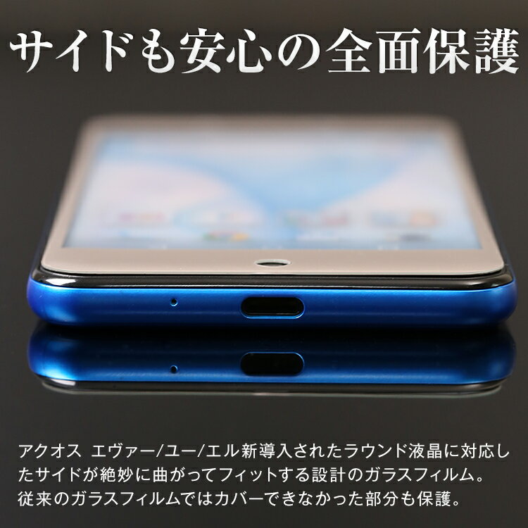 サイドも安心の全面保護 アクオス エヴァー/ユー/エル新導入されたラウンド液晶に対応したサイドが絶妙に曲がってフィットする設計のガラスフィルム。