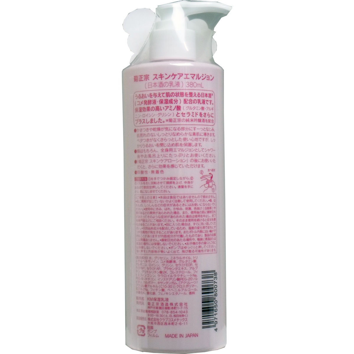 菊正宗 日本酒の乳液 380ml(菊正宗 乳液 菊正宗 化粧水 菊正宗 化粧品 日本酒 化粧水 乾燥肌 スキンケア お酒 化粧水 日本酒 化粧水 おすすめ)7560円以上で送料無料!